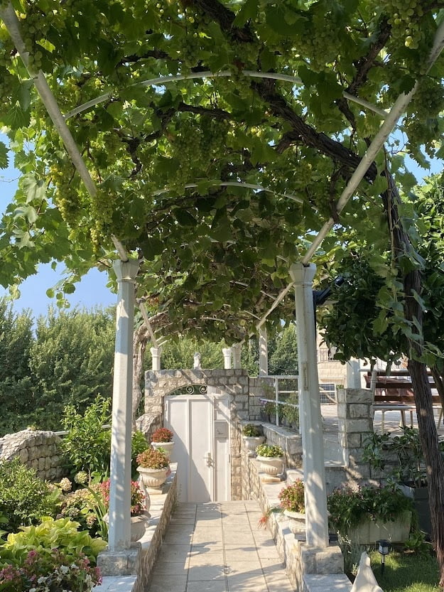 Dans notre premier logement à Mlini, près de Dubrovnik, nos hôtes avaient un magnifique jardin avec une pergola en vigne (oui en vigne), un kiwitier, un citronnier, un olivier, et un potager prolifique offrant des tomates, concombres, poivrons, piments, salades et des herbes aromatiques comme le basilic et le romarin. Un midi, dans un restaurant de la vieille ville, j’ai littéralement cueilli des feuilles de basilic pour agrémenter ma salade caprese. Je ne sais pas si c'est du à ma totale déconnexion aux éléments de la Nature de ma vie de citadine montréalaise qui fait cela, mais que c'est bon de se ressourcer.